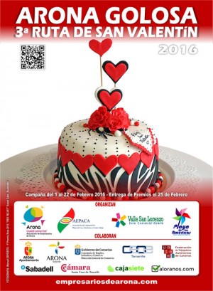 Empresarios y clientes podrán participar a partir del lunes 1 de febrero en la 3ª Ruta Arona Golosa que con motivo del Día de San Valentín organiza la Asociación de Empresarios, Comerciantes y Profesionales de Arona (A.E.C.P. Arona)